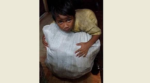 bocah ini pun bekerja membanting tulang, sehari-harinya ia memungut
